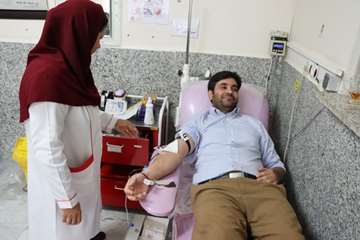 اهدا خون جمعی از کارکنان شرکت شهرک های صنعتی خراسان جنوبی به مناسبت یوم الله فجر 1403